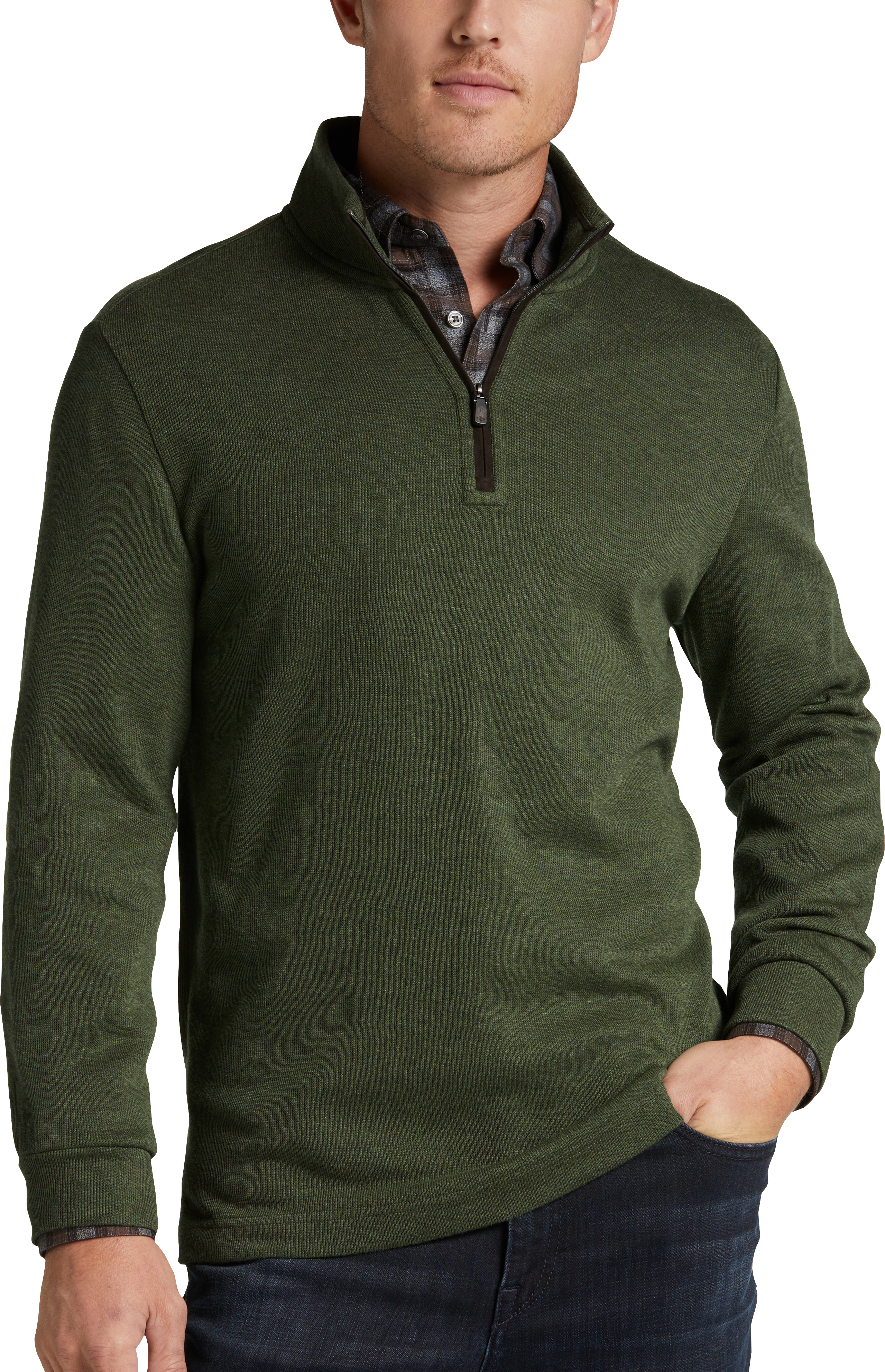 Joseph Abboud Modern Fit 1 4 Zip Sweater Olive Men S Sale Men S Wearhouse