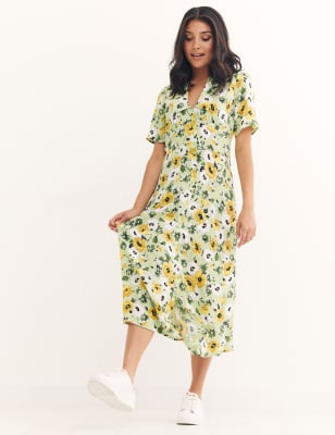 Daisy Floral Collared Midi Shirt Dress