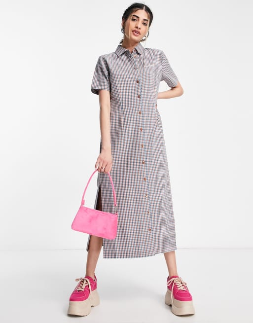 Kickers Button Down Midi Shirt Dress In Blue Check Asos